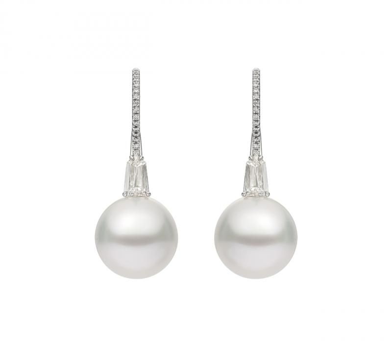 Белый жемчуг, бриллианты фантазийной и круглой огранки
